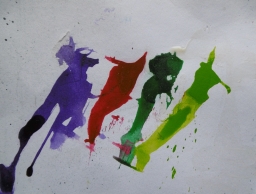 Für mich ist es spannend, den Verlauf der Acrylfarbe auf der horizontalen Leinwand zu dirigieren oder mit der Injektionsspritze Naturgeprägtes und Abstraktes zu verbinden. Wie beim Aquarellieren werden Areale maskiert, Straßendreck in die farbnasse Fläche gestreut oder vorher eine dritte Dimension aufgebaut.